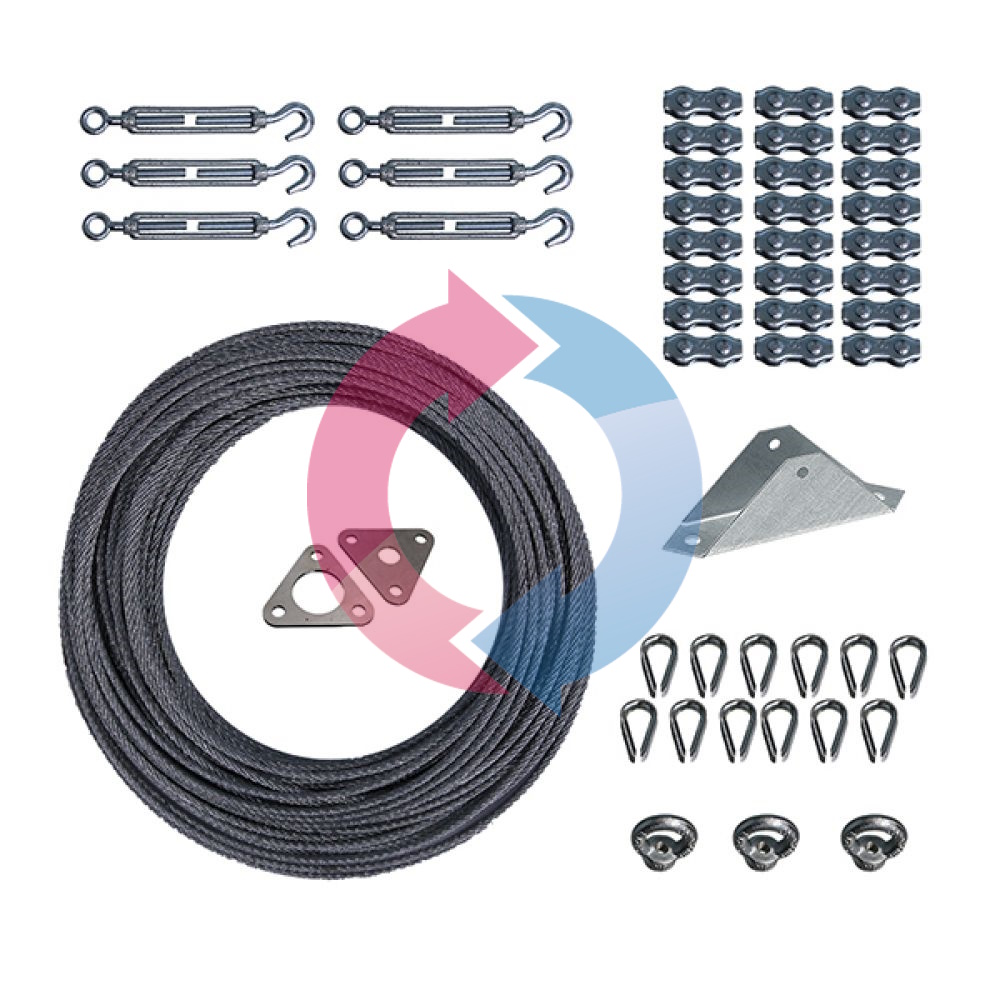 Комплект растяжек необходим для надежного крепления молниеприемной мачты серии СММ высотой от 2 до 6 метров без учета молниеприемника на твердой поверхности (бетонной поверхности, кровли, в т. ч. скатной).