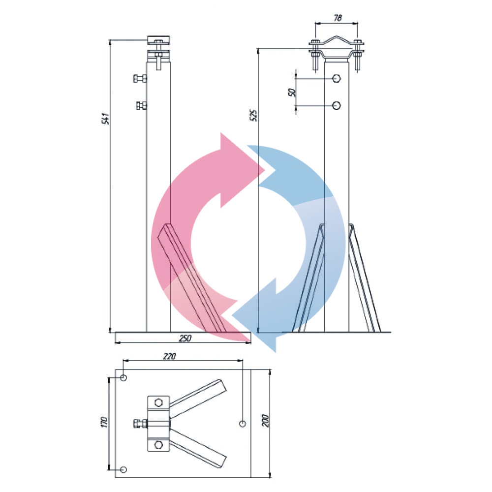 Кронштейн для мачты 600-800 мм телескопический, сталь.