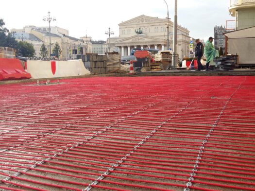 Обогрев тротуаров схож по своей технологии с обустройством подъездных путей. Поверхность, на которую будут укладывать нагревательный кабель должна быть ровной, без ямок, очищенной от камней и других острых предметов.